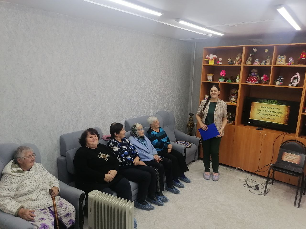 В отделении «Специализированный жилой дом для граждан пожилого возраста и инвалидов» ГБУ "КЦСОН Краснобаковского муниципального округа" прошел библиотечный час «Художественные промыслы Нижегородской области. Виртуальная экскурсия». Одна треть всех народных художественных промыслов России сосредоточена на Нижегородской земле. На протяжении сотен лет ремесла кормили, обували и одевали жителей деревень и городов. Начав заниматься ремеслом из-за нужды, местные умельцы относились к своему делу с душой, старшие передавали секреты производства, а молодые чтили традиции. Наши предки создавали обыкновенные предметы быта, а сегодня мы рассматриваем их в музеях как произведения искусства. Вышитые старинные полотенца, чудом сохранившиеся архитектурные изразцы, румяные матрешки в расписных косынках — это духовные и культурные традиции Нижегородской области.Присутствующие узнали, какую роль в развитии ремесел сыграли древнерусские монастыри, почему домовую резьбу называли корабельной, правда ли, что кружева плелись не только из мягкого шелка, но и из прочной проволоки, и почему железные ларцы лысковских мастеров назывались "персидскими".